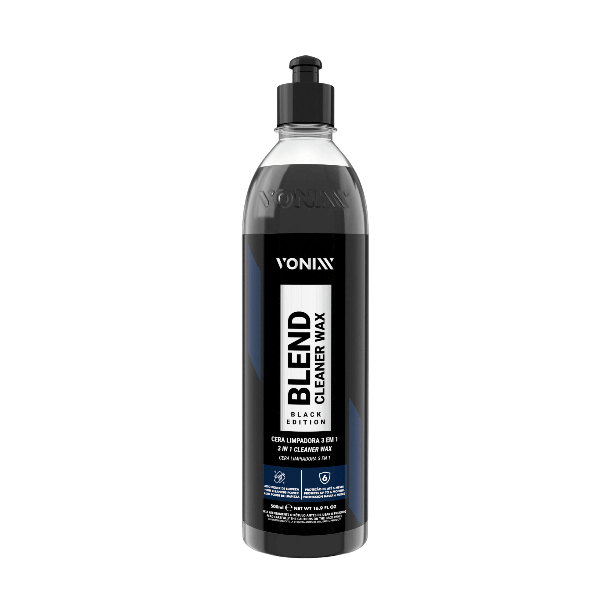 A Blend Cleaner Black Edition é exclusiva para carros de cores escuras. Com o poder de 3 em 1 na palma da sua mão, o resultado será proteção, limpeza e brilho. Sua fórmla contém microabrasivos de baixa abrasividade que não prejudica a pintura do veículo. Além disso, esse produto possui a carmaúba tipo 1 e Sio2 que juntas, formam três características fundamentais que resultam numa pintura impecável.