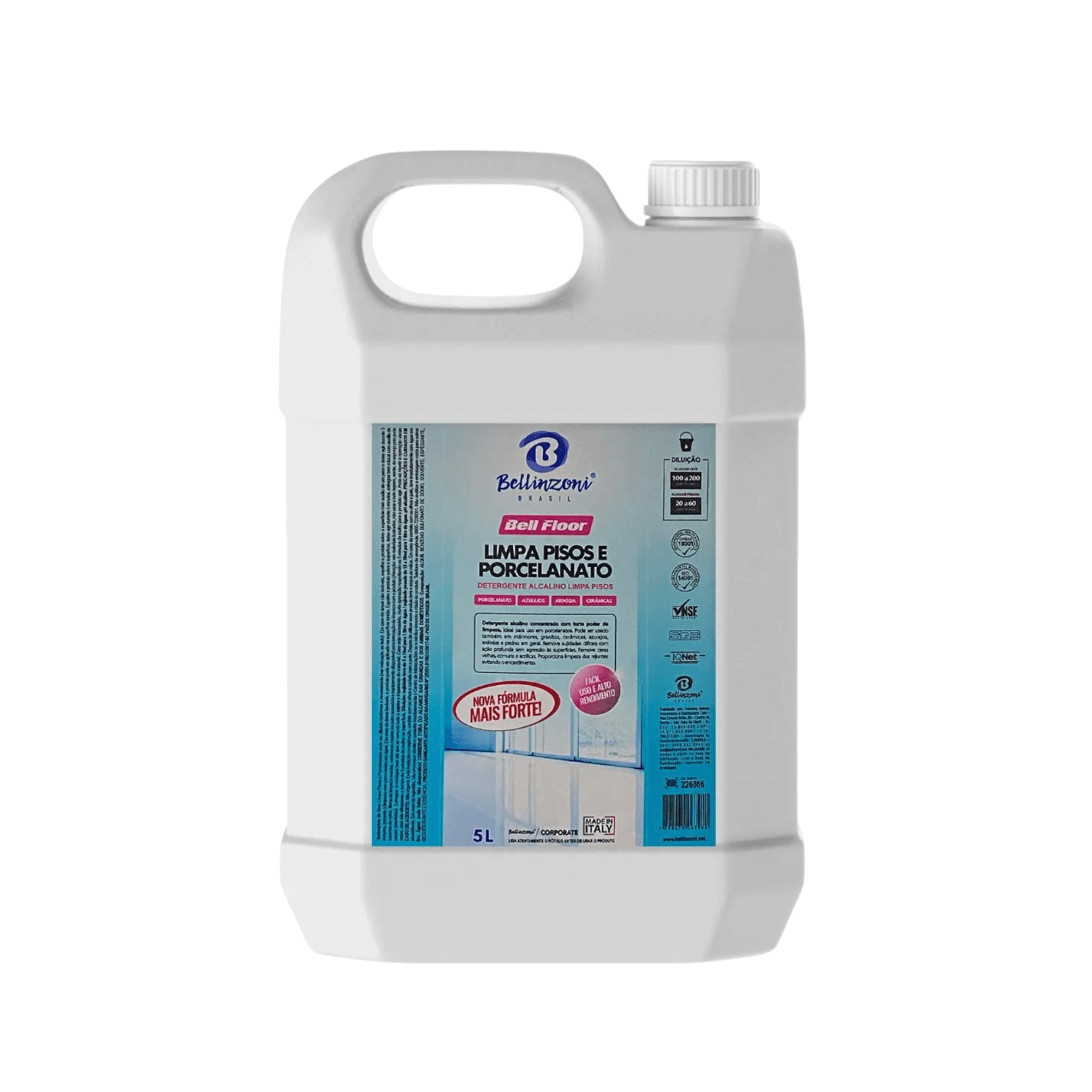 O Limpa Pisos e Porcelanato 5L Bellinzoni é um detergente concentrado com forte poder de limpeza, ideal para uso em porcelanatos. Pode ser usado também em mármores, granitos, cerâmicas, azulejos, ardósias e pedras em geral. Remove sujidades difíceis com ação profunda sem agressão às superfícies. Remove ceras velhas, comuns e acrílicas. Proporciona limpeza dos rejuntes evitando o encardimento. Pode ser usado após festas, obras ou periodicamente conforme a necessidade.