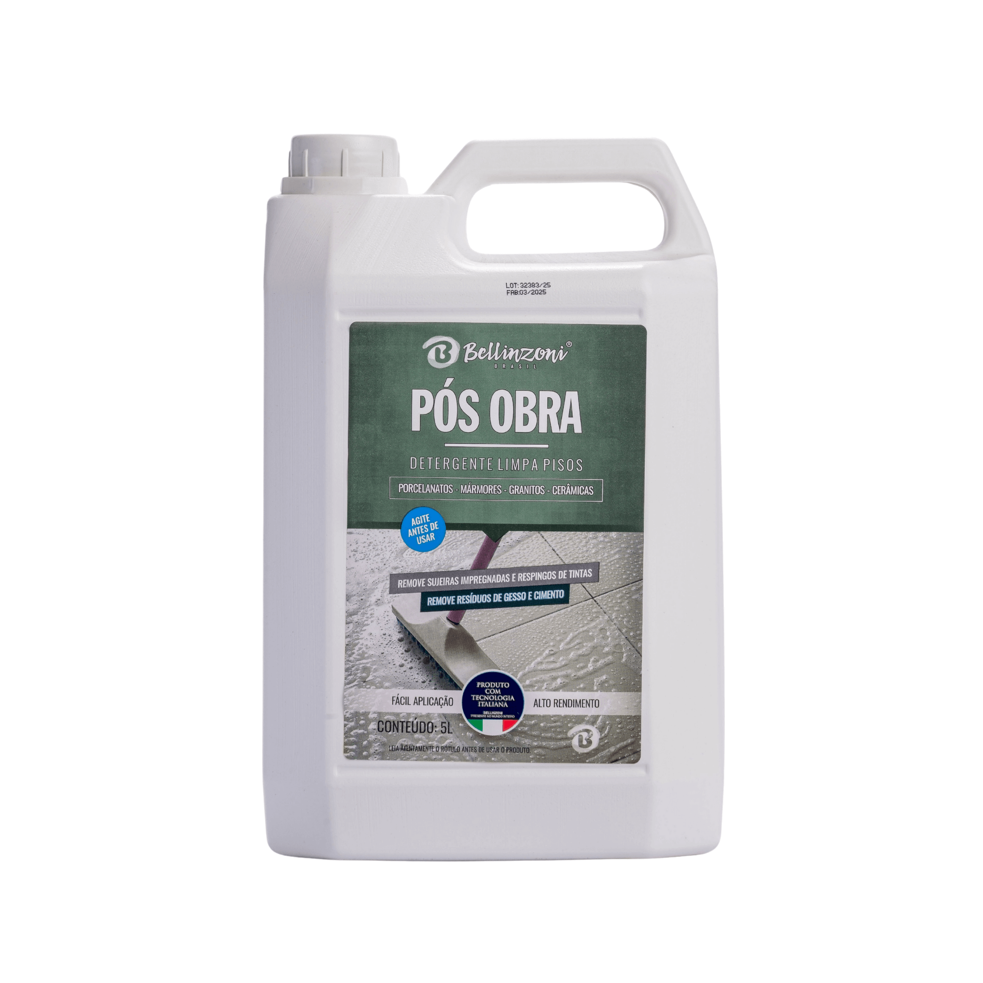O Pós Obra 5L Bellinzoni é um detergente alcalino concentrado e com forte poder de limpeza para todos os tipos de pedras. Pode ser usado em todos os tipos de revestimentos como: porcelanatos, mármores, granitos, cerâmicas, azulejos, pastilhas e pedras em geral. Não agride a superfície do material. Remove contaminações de resíduos de obra como gesso, respingos de tintas, cimento e sujeiras impregnadas sem agredir o material.